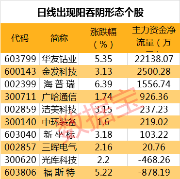 10股K线阳吞阴 华友钴业资金流入超2亿元