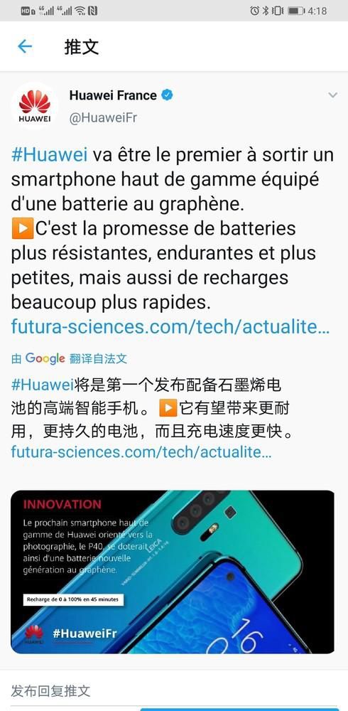 并称华为将第一个发布搭载石墨烯电池的高端智能手机!