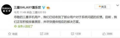 23日上午,三星GALAXY盖乐世发布微博称,尊敬的三星手机用户,我们已经收到了部分用户对于系统问题的反馈。