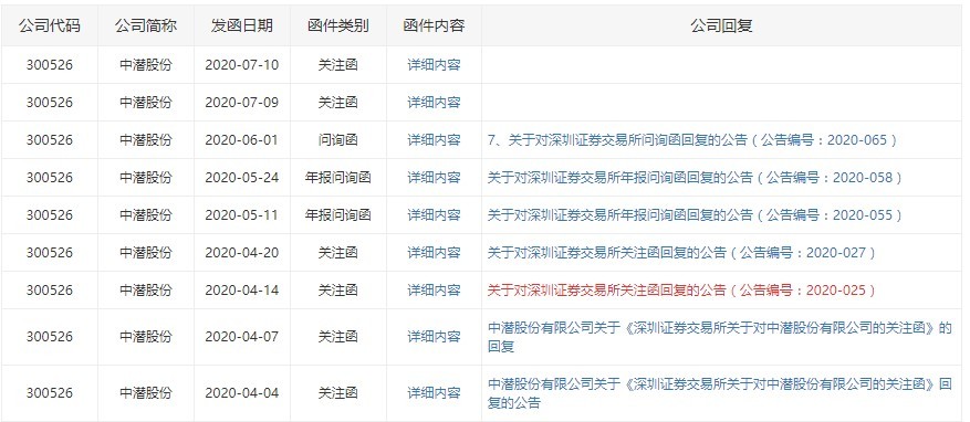 上述统计可以看到,4月至7月期间,中潜股份每个月都被监管层所关注。