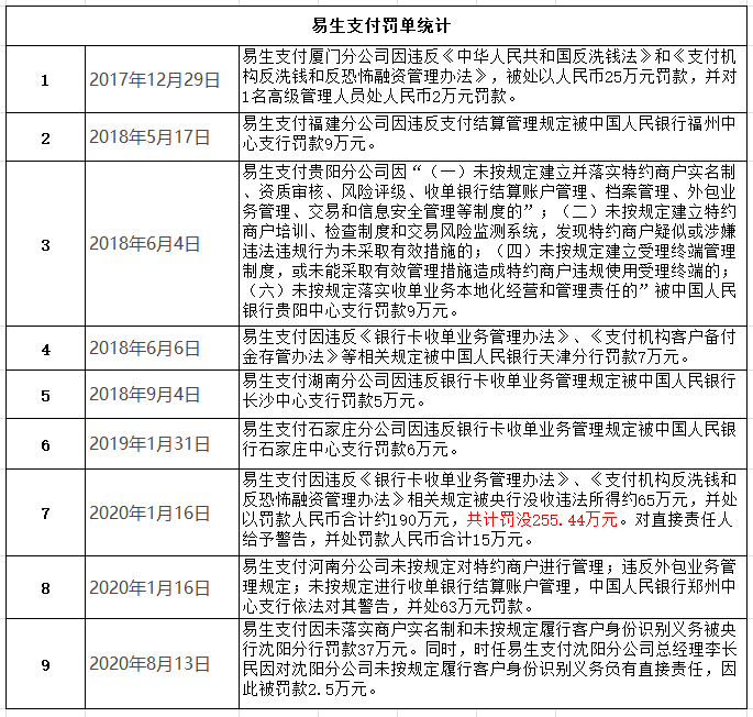 记者注意到,此次被缩减业务范围的两家机构就都曾收到罚单。其中,环迅支付在2019年被罚没5939万元,一度刷新支付罚单纪录。杉德支付也曾收到央行千万级罚单,2018年因违反支付业务规定,杉德支付合计罚没金额2473万元。